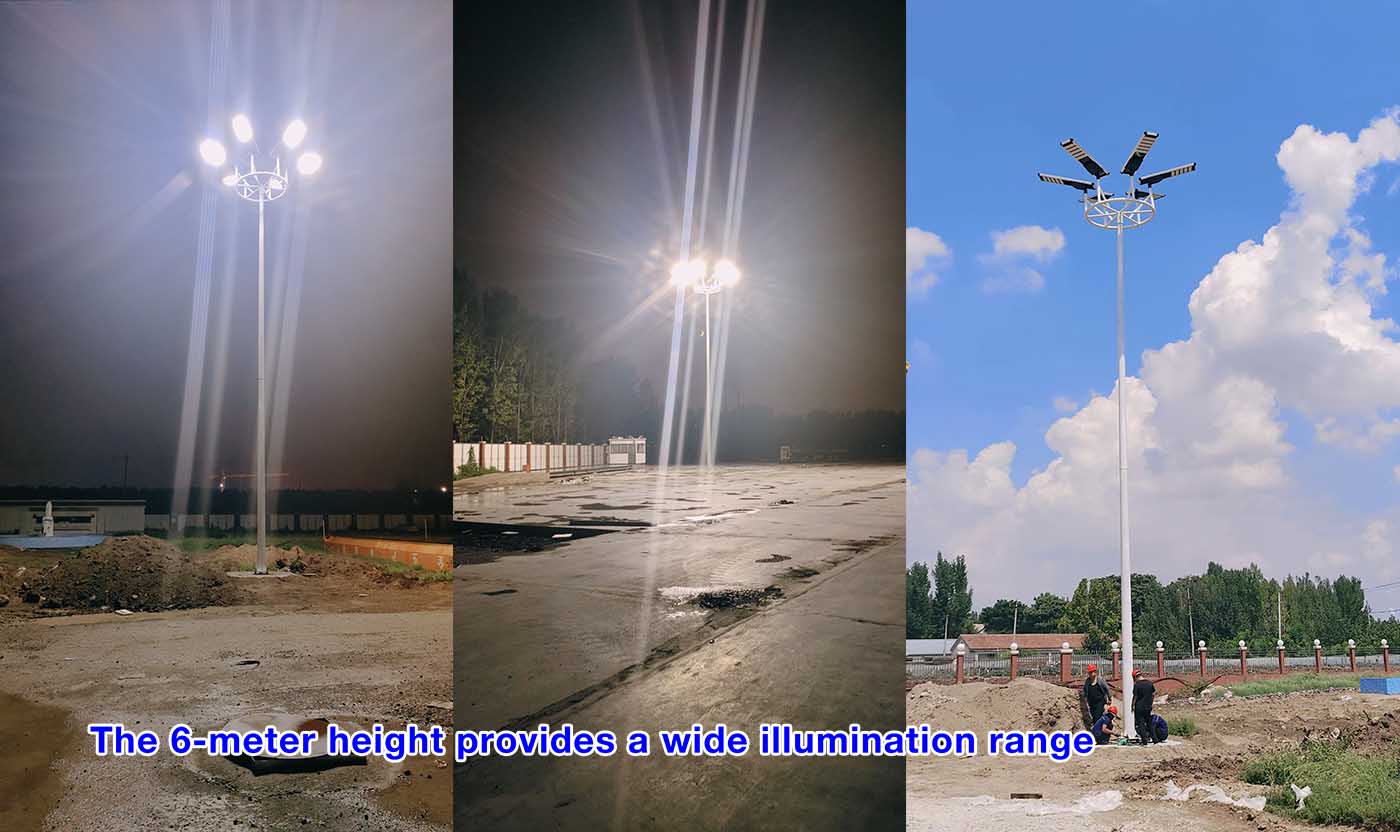 Features Wide Illumination Range: The 6-meter height provides a wide illumination range, typically covering an area of at least 30 meters in diameter, meeting the lighting needs of municipal roads, residential communities, parks, and other locations.